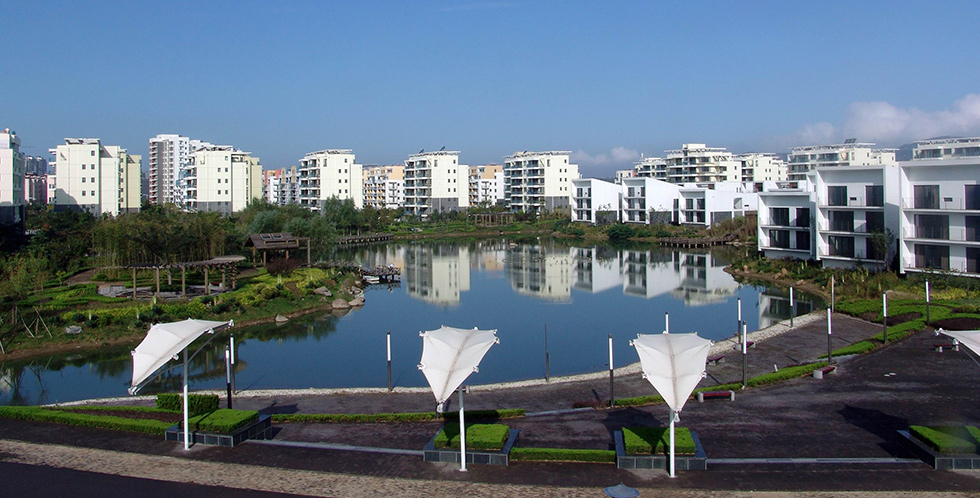 項目于2003年10月開工建設(shè),規(guī)劃共分為六個多層組團、一個小高層組團、一個低層別墅組團以及沿街的公共服務(wù)設(shè)施組團??傉嫉?94畝,容積率0.88,綠化率48%,1萬多平方米的人工水景遍布園區(qū),規(guī)劃建筑面積約38萬平方米,居住總戶數(shù)達3000戶。