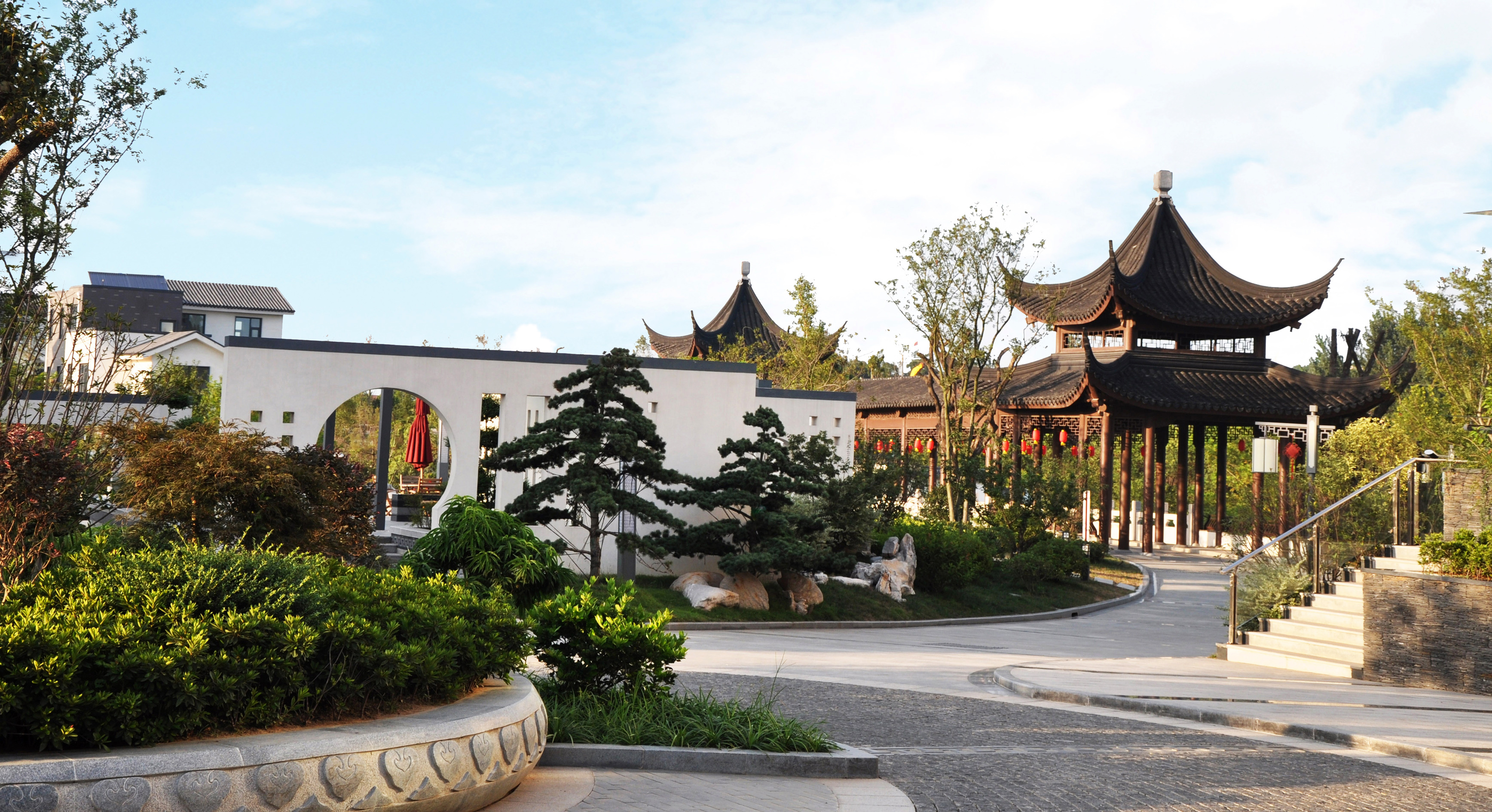 山水龍庭項(xiàng)目位于北京路與山海二路交匯處,是山海大象集團(tuán)為響應(yīng)國(guó)家推進(jìn)住宅產(chǎn)業(yè)化開(kāi)發(fā)建設(shè)的新型建材示范區(qū),項(xiàng)目借鑒中國(guó)傳統(tǒng)園林的手法和意境,打造了具有蘇州園林特色的景觀帶公園,將建筑、自然、藝術(shù)相結(jié)合,無(wú)論是堆山理水還是種植植物,都承載著豐富的生命情感。