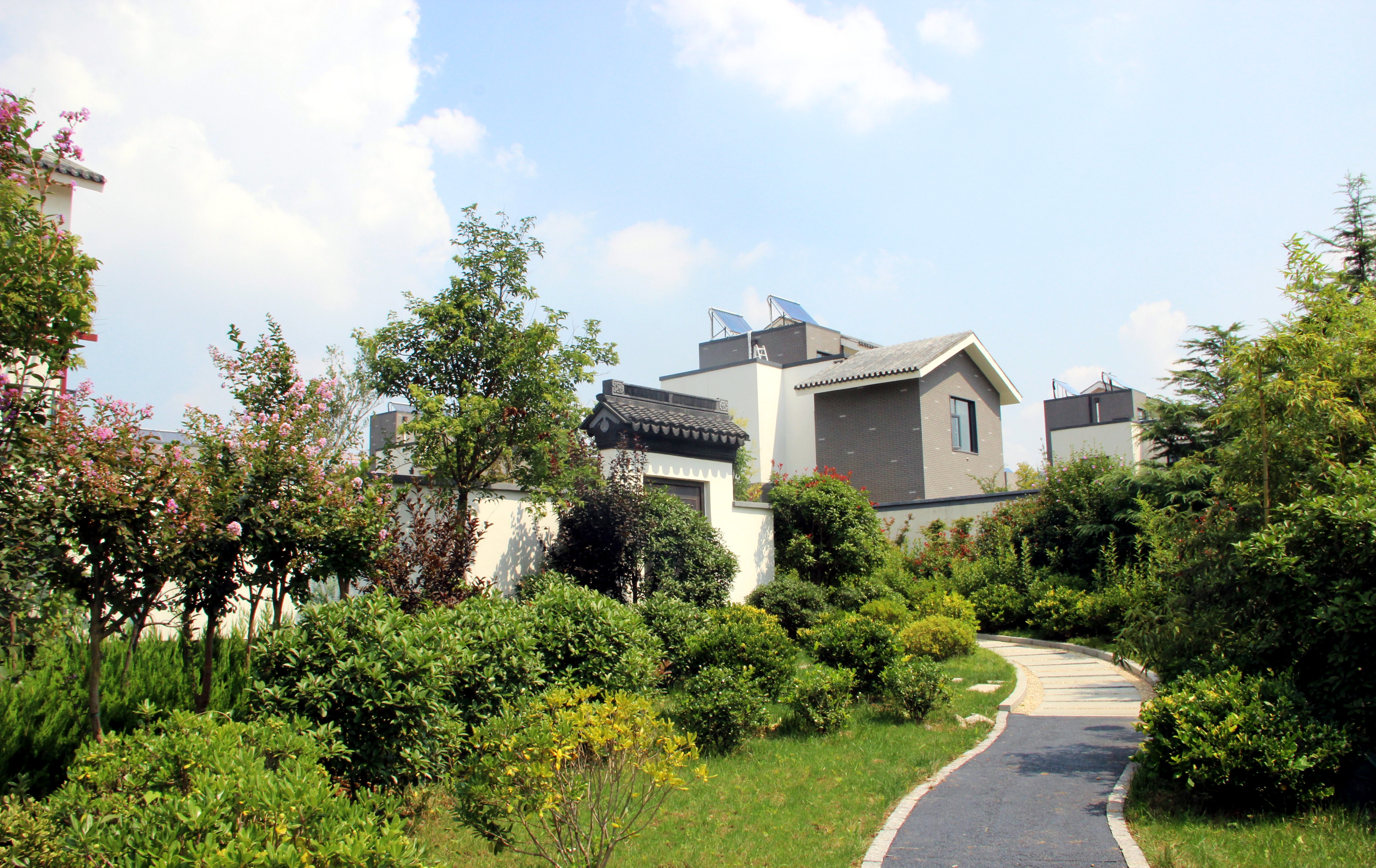 項(xiàng)目總占地170畝(注:約11萬(wàn)平方米,另不含小區(qū)內(nèi)河流110畝)、總規(guī)劃建筑面積約20萬(wàn)平方米,綠化率36%,容積率1.26(不含小區(qū)內(nèi)河流),主要有聯(lián)排、圍合式院落別墅、疊拼、多層、高層五種建筑形式。